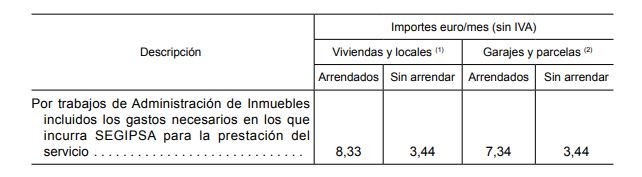 Estas tarifas pertenecen a la Resolución de 12 de febrero de 2001 de la Subsecretaría de Hacienda por la que se aprueba la tarifa de Administración de Bienes Inmuebles.