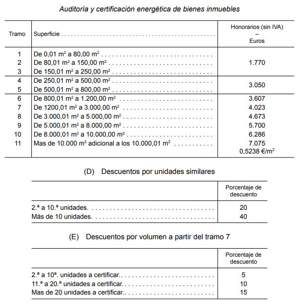 La Resolución de 11 de mayo de 2015, de la Subsecretaría, por la que se modifican diversas tarifas generales aplicadas por la Sociedad Estatal de Gestión Inmobiliaria de Patrimonio, SA., incluye tarifas correspondientes a auditoría y certificación energética de bienes inmuebles
