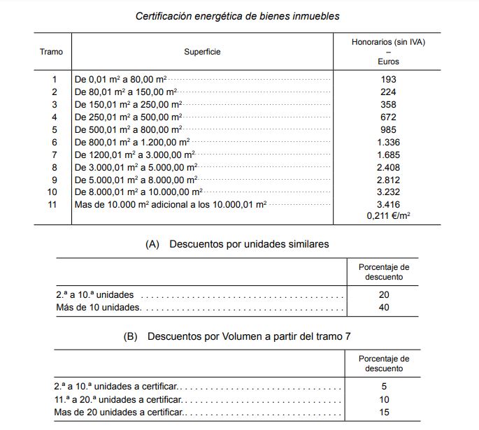 - Las tarifas reflejadas corresponden exclusivamente a la emisión de la certificación, no incluyéndose en estos trabajos ni la gestión de la misma ante la administración competente ni las tasas que tal gestión implique.